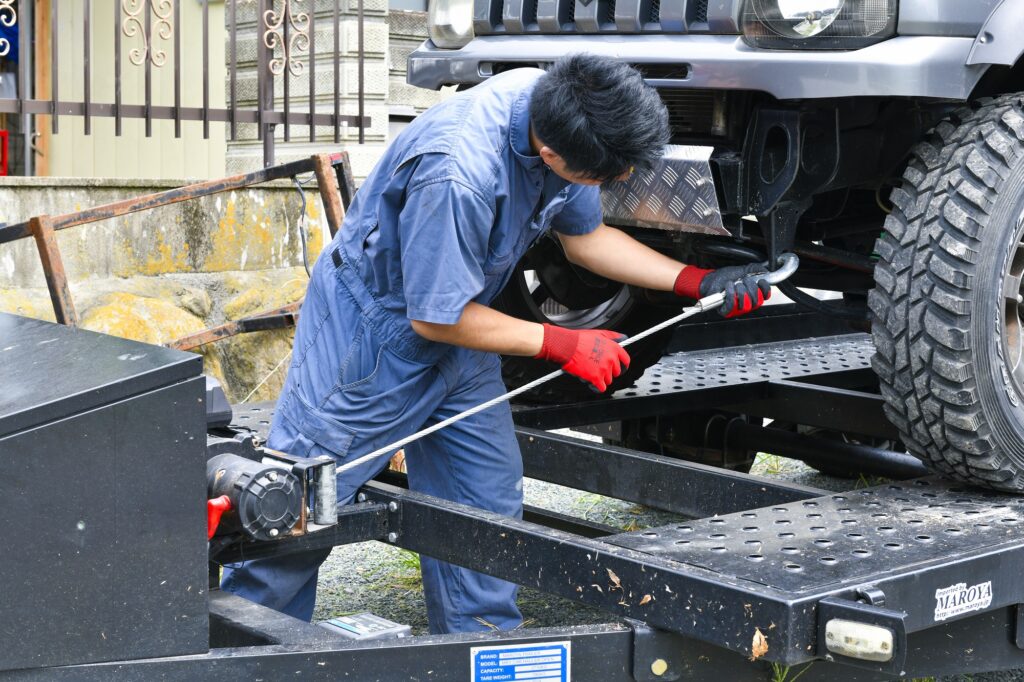 「突然のパンク・トラブルに!現場へ駆けつけ、その場でタイヤ交換」