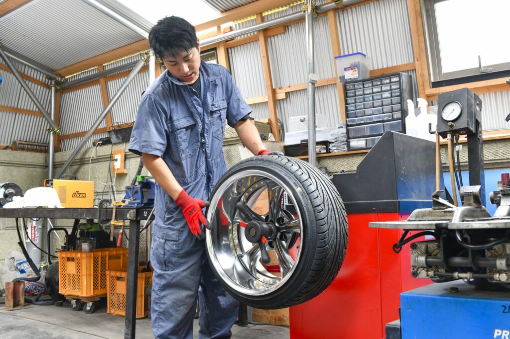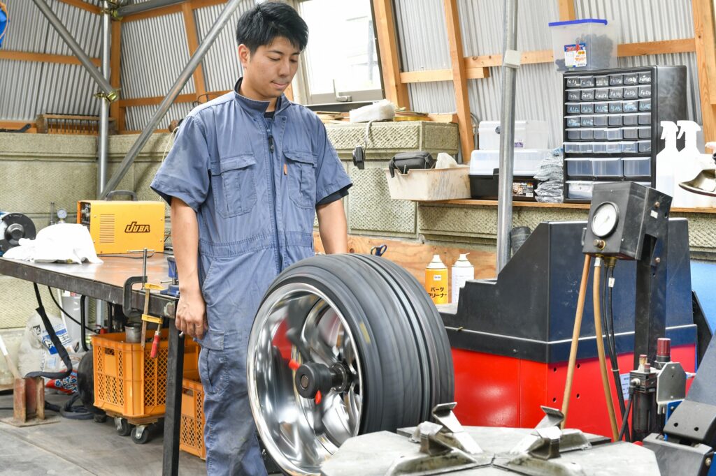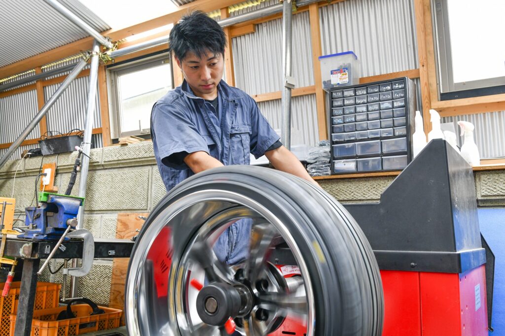 タイヤは命を乗せて走るもの。だからこそ、当店は「丁寧な対応」「確かな技術」を徹底しています。 地域最安級の工賃で、新品・中古タイヤの販売から、持ち込みタイヤの取り付けまで幅広く対応。スタッフが1本ずつ正確に組み換え・バランス調整を行い、安心のカーライフをサポートします。